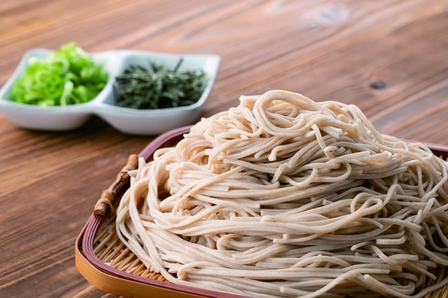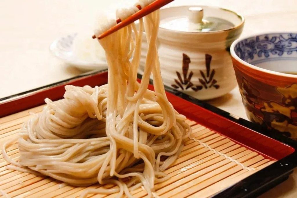 所谓荞麦面,指的是将荞麦的果实磨成粉后,加水和成面团,再切成细长的面条,最后再用热水焯一下即可食用。