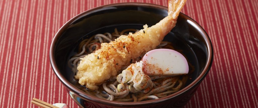 荞麦面与天妇罗都是和食的代名词。而天妇罗荞麦面就是放了虾和蔬菜的天妇罗的荞麦面,它拥有热的和冷的两种吃法。其吸引人的地方就是鲜虾有嚼劲的口感。