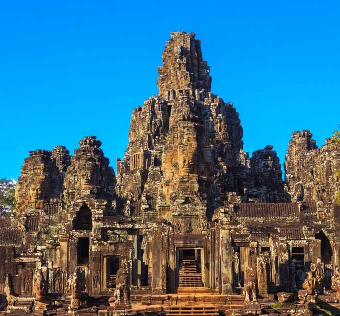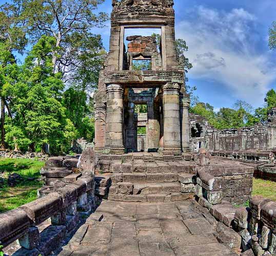 吴哥最宏大、结构最复杂的寺庙之一,通道纵横交错、回廊深邃,著名的“门框叠门框”视角极具视觉冲击力。这里是国王阇耶跋摩七世为父亲建立的纪念寺院,倒塌的墙体与缠绕的树根营造出优雅的荒凉美,适合喜欢人文探秘的游客。