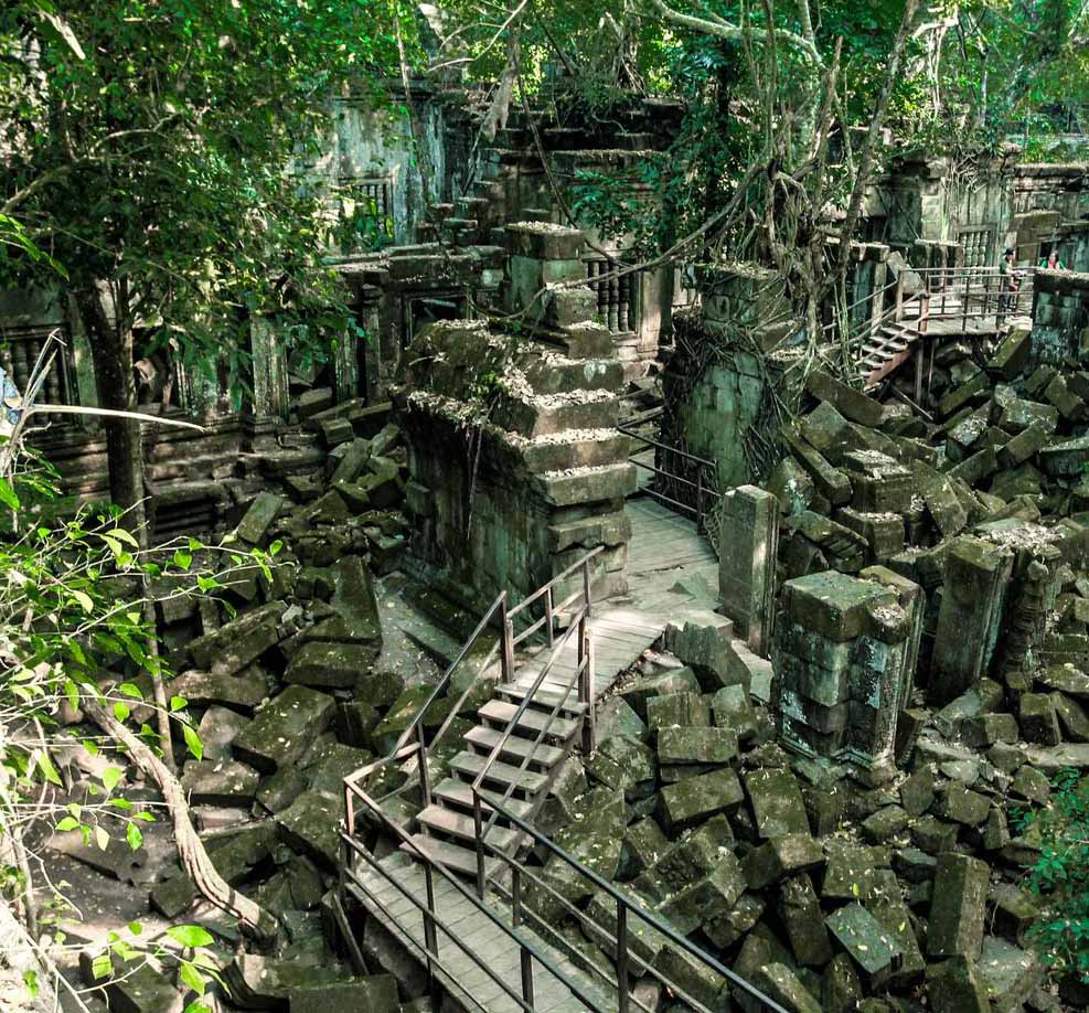 未经过多修复的“丛林版吴哥窟”,巨石倒塌、藤蔓攀爬、树根从墙壁间挤出,宛如宫崎骏电影中的秘境废墟。游览需手脚并用攀爬乱石,建议穿防滑运动鞋,门票5美元。这里游客稀少,能深刻感受文明与自然的“缠斗”,极具探险氛围。