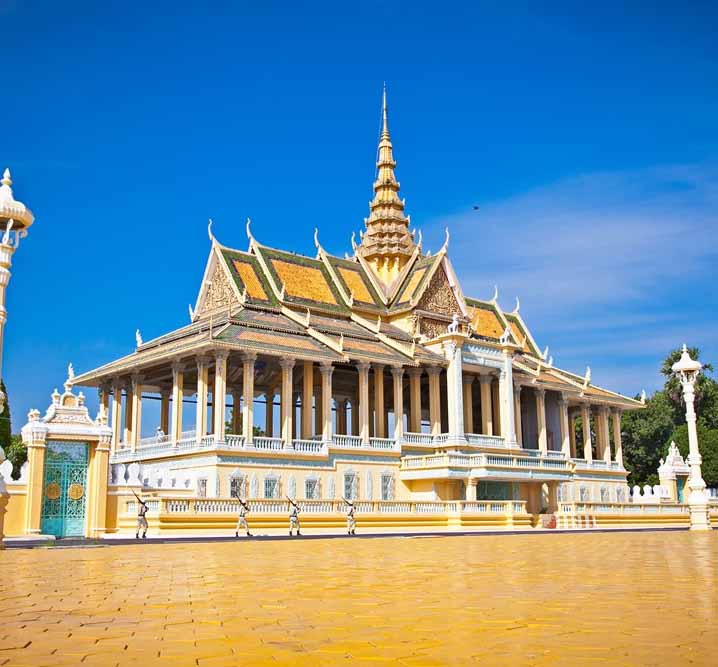 柬埔寨皇室的居所,融合高棉传统建筑与法式风情,银殿是必看亮点——地面铺有5吨纯银砖,供奉着90公斤的翡翠佛像(禁止拍照)。参观需严格遵守着装规范,过膝服装、脱鞋摘帽方可入内。每周日早8点可观看卫兵换岗仪式,仪式庄重且富有仪式感,值得驻足观赏。