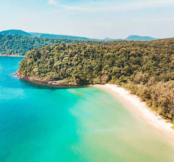 西港周边最热门的离岛,7公里长的长滩(Long Beach)沙质细腻,海水清澈见底。6-8月夜间可划皮划艇观赏荧光浮游生物,海面泛着蓝色微光,宛如置身童话世界。从Koh Tuich村徒步2小时可抵达丛林瀑布,终点的天然泳池可游泳降温,尽享原始自然的乐趣。