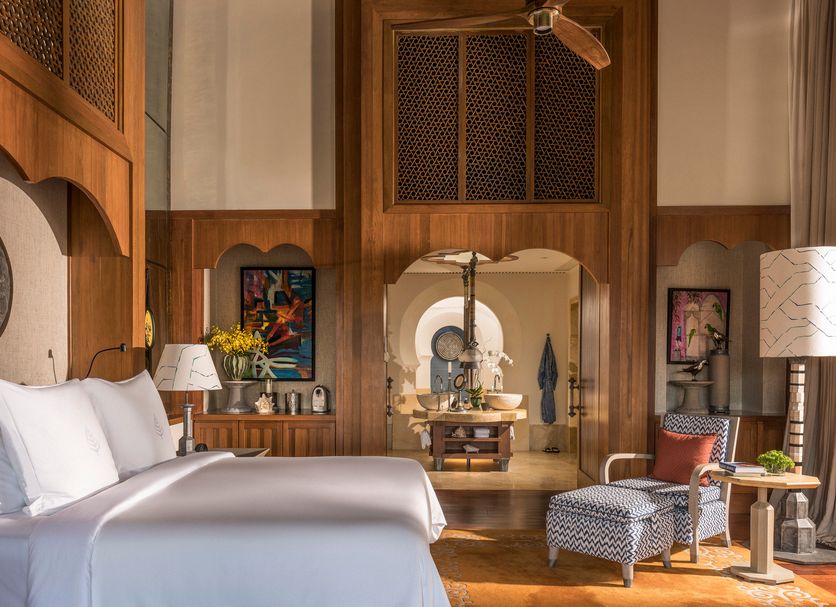 度假村设计灵感源自17世纪马来宫殿,处处体现着古典的优雅和热带慵懒感,曾荣获久负盛名的Aga Khan建筑奖。所有客房都是独立的马来风格木屋,可入住2大2小(11岁及以下),面积55㎡起跳。
