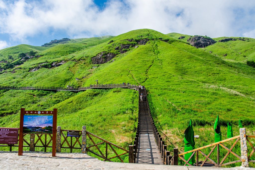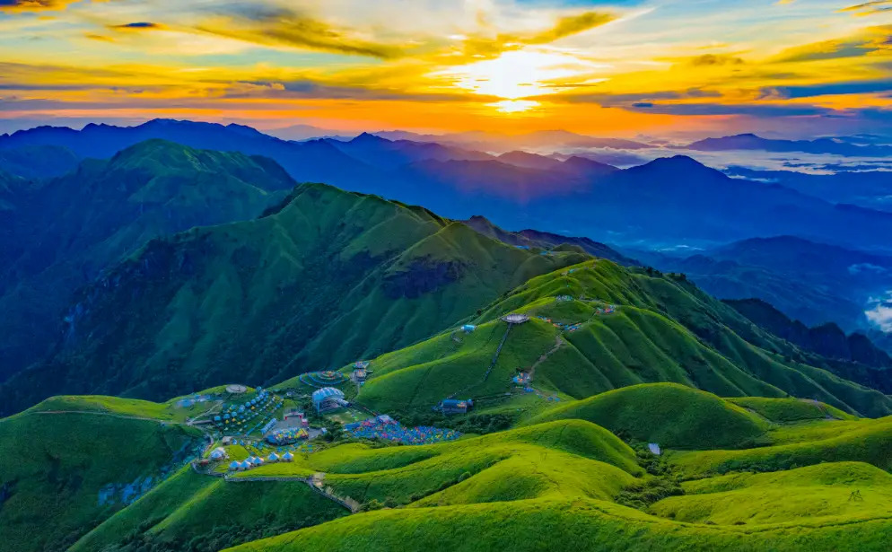 这是一片能让灵魂自由奔跑的空中原野。武功山以其独一无二的“云中草原”闻名,主峰金顶海拔近两千米,武功山春季山花烂漫、云海频出,夏季草甸满目翠绿、避暑观星,秋季草甸金黄、秋色满山,冬季冰雪世界、观雾凇和冰挂,真是一年四季都适合旅游。