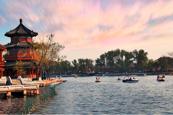 北京什刹海公园位于北京市西城区西北部,由什刹海(又名前海)、后海和西海(积水潭)三个相连的湖泊组成。什刹海历史文化底蕴深厚,历史上这里是寺庙林立的地方,素有九庵一庙之说,所以这里也得名为什刹海。什刹海地区是北京城内保留了原有民俗文化的富于老北京特色的传统风景区。什刹海公园也已经成为夏日泛舟、冬季溜冰的游乐场所。宋庆龄同志故居就在什刹海公园附近。什刹海风光旖旎,三海一水相连。畅游在这个被称为老北京最美的地方。