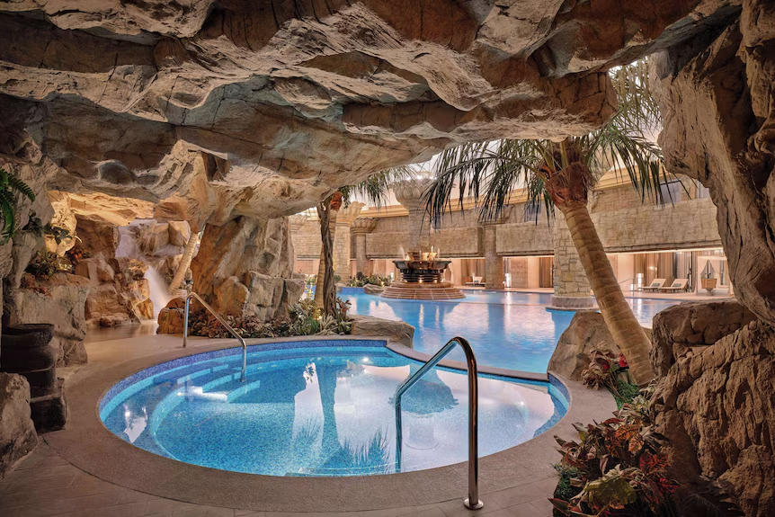 临近八达岭长城,配套12000㎡温泉戏水区,是家庭出游热门选择。春节期间推出皇家窑琉璃釉作体验,搭配卡丁车、小火车等游乐项目,玩剧城还设有传统文化六艺体验,亲子互动感拉满。酒店内彩丰小馆特别推出多款不同价位年夜饭。