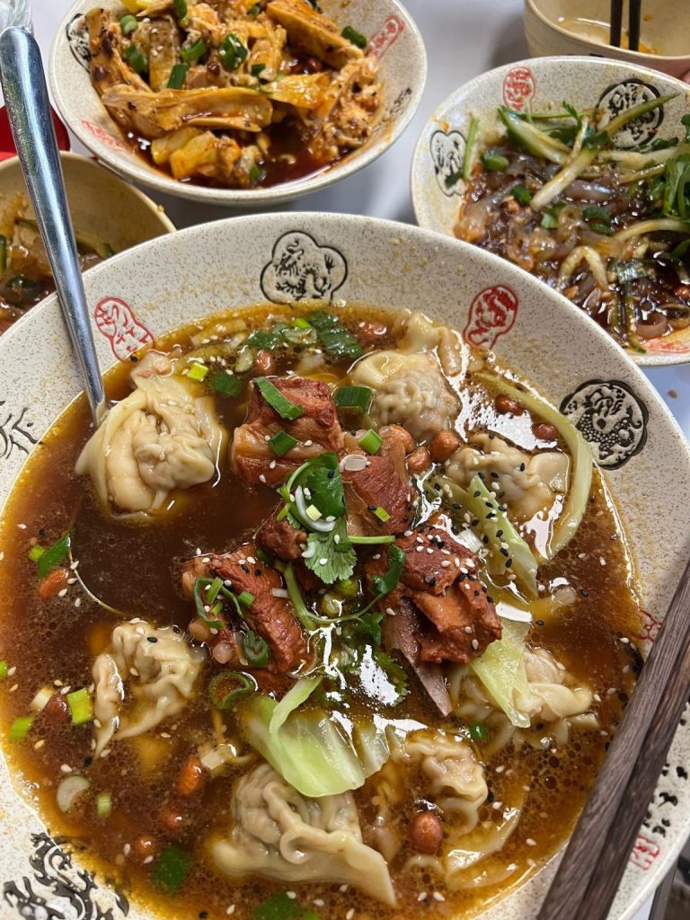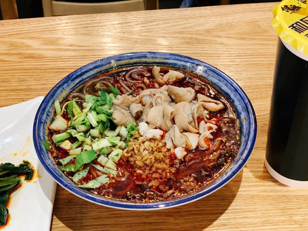粗壮有嚼劲的面条,裹上浓稠的红糖汁,撒上花生碎、蒜泥等,甜辣中带蒜香,口感劲道,是成都面食中的“豪放派”代表。