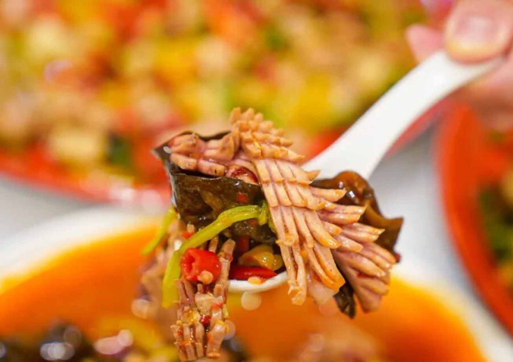 夫妻肺片、蒜泥白肉的红油香很正,火爆腰花的刀工和火候都不错。