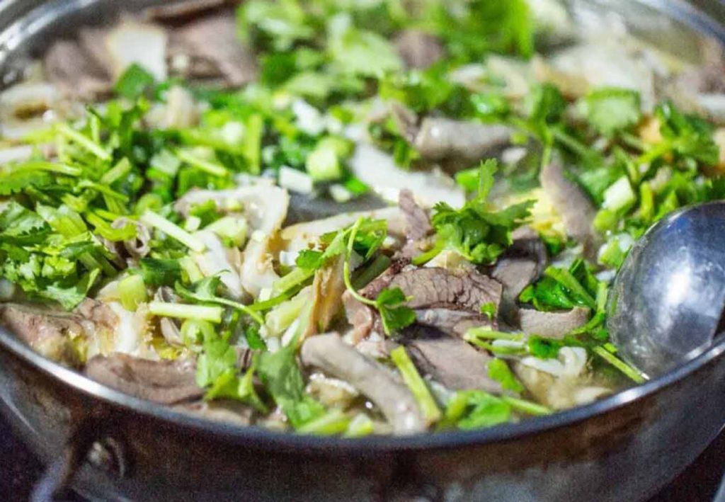调味不算出彩(建议点微辣,更有味),宝藏之处在于部位齐全,每个部位口感都很到位:牛肉锅,用的是牛腱+牛后腿,一点不柴,咸淡正好;128的牛杂锅,牛肚炖得正好,牛舌软嫩还实惠,牛小肠带着弹韧的肉感。