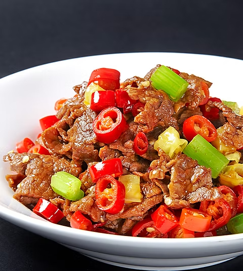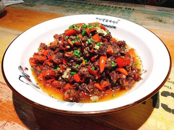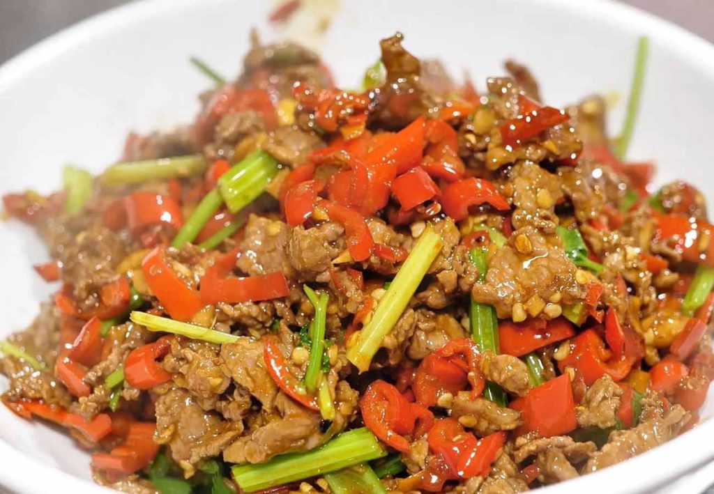 小炒黄牛肉也是江西小炒中的热销菜品,对食材和火候的要求很高。选用新鲜的黄牛里脊肉为主料,先切成薄片,加食盐、生抽、蚝油抓拌均匀,再起锅烧油,放姜末、蒜末、小米辣炒出香味,倒入牛肉快速滑炒,加少许生抽、味精、白酒,倒入香菜段,翻炒十几秒即可。这样做出的黄牛肉,口感滑嫩,一点都不柴,辣中带鲜,让人回味无穷。