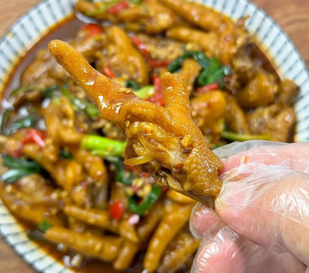 江西人对鸡爪情有独钟,逢年过节时餐桌上总是少不了它,而其中最经典的做法便是辣鸡爪,红红火火,鲜辣过瘾。选用新鲜的鸡爪,剪掉指甲,从中间剖开,冷水下锅,加姜片、白酒焯水去腥,另起锅放入鸡爪,加辣椒、桂皮、八角、老抽、生抽等,倒入开水,卤制二十分钟盛出,再起锅烧油,放入蒜末、辣椒炒香,倒入鸡爪翻炒均匀,焖制一会即可。
