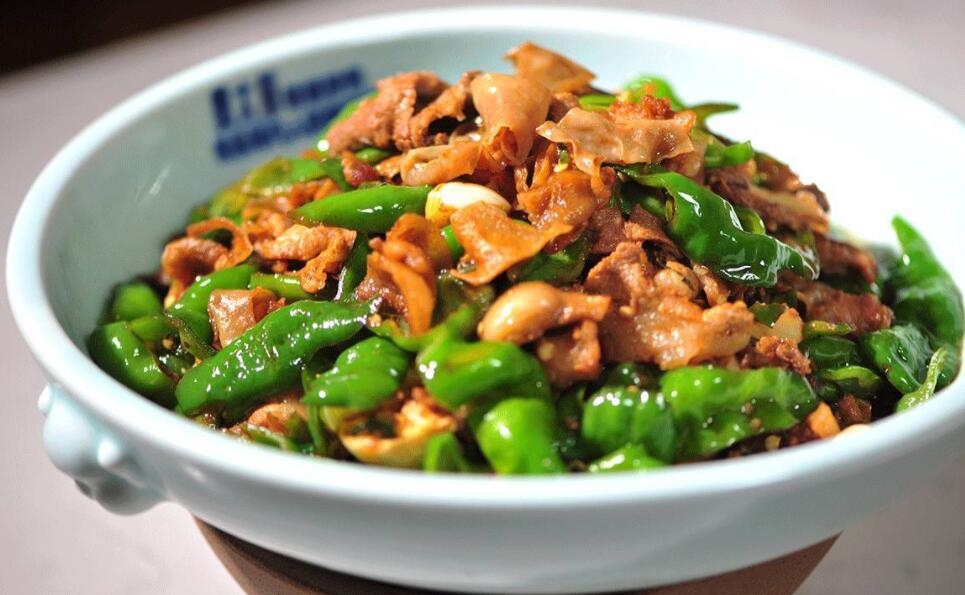 辣椒炒肉被誉为江西的“省菜”,在当地家喻户晓,很多江西人学做第一道菜便是辣椒炒肉,以余干辣椒炒肉最为有名。制作辣椒炒肉,要选用江西本地的线椒或小米辣以及肥瘦相间的五花肉,五花肉切成肉片,起锅烧油,放入肉片炒出油脂,加入豆豉、蒜片、生抽翻炒几下,再放入辣椒,大火爆炒几十秒,加食盐、鸡精调味即可。做好的辣椒炒肉,辣椒的脆嫩鲜辣、猪肉的焦香肥嫩融为一体,非常下饭。
