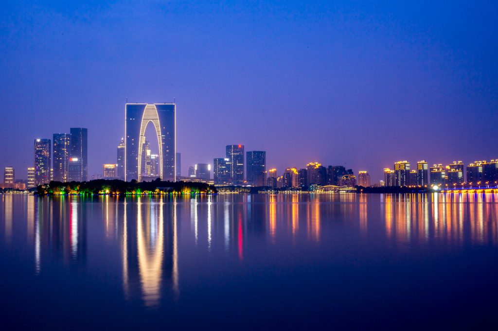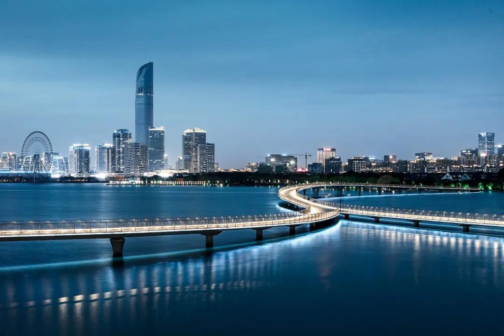 现代都市地标“东方之门”作为城市门户,与“苏州中心”、“国金中心”等共同勾勒出苏州摩登的天际线。