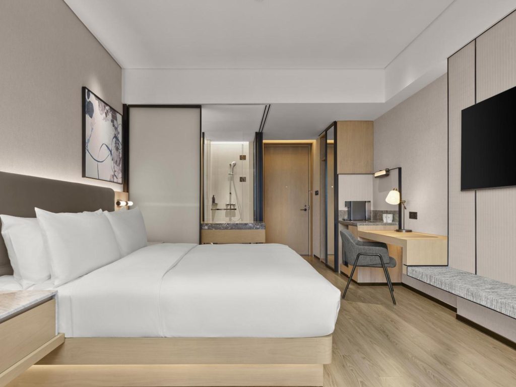 酒店共有409间客房与套房,包含大床房和豪华套房等多种房型,配备全景落地窗。酒店还设有精致时尚的全日特色餐厅、多功能会议设施、灵活社交空间等功能场所,同时配有健身中心、24小时自助洗衣等设施。酒店以独到的设计风格、独特的创新体验和全天候的便捷服务,为旅客们打造便捷舒心的现代入住体验。