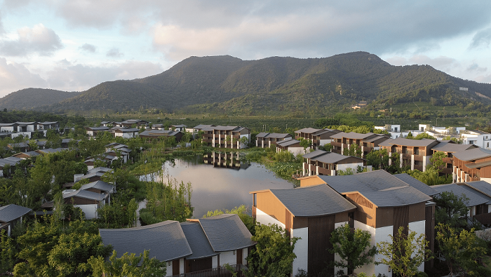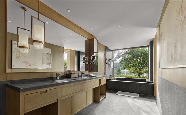 酒店设计灵感取源于树山的山水灵气,让你在漫步隽永优雅酒店园林之余,在山野环抱中汲取自然能量。环绕着秀丽的山峦和温泉福地,酒店共打造了175间客房,从花园临湖静居到独栋园林别墅,体验酒店与经典苏式园林美学的美妙融合。