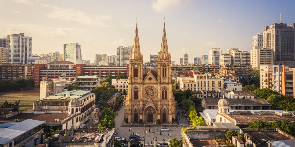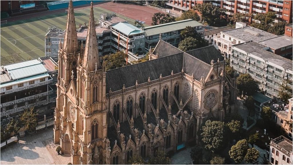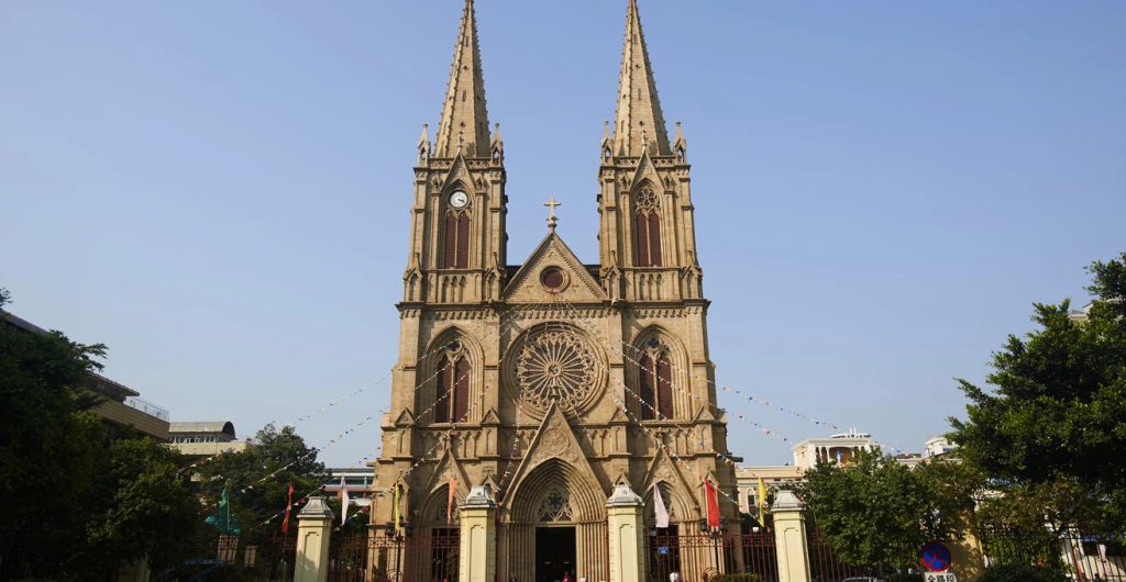 当你走在车水马龙的一德路批发市场,忽然看到这座高大的哥特式建筑,一定会眼前一亮。它是东南亚最大的石结构天主教建筑,也是全球四座全石结构哥特式教堂之一(另外三座是巴黎圣母院、威斯敏斯特和科隆大教堂)。教堂始建于1863年,它得以立址奠基正是由于丧权辱国的《北京条约》,建造时不断遭到本地人的抵制和阻挠,历时25年才建成。教堂在“文革”期间被破坏得面目全非,玻璃花窗被打碎(如今所见为21世纪重制),所有经书、油画等被火烧尽,幸好坚硬的花岗岩主体建筑抵住了大火。