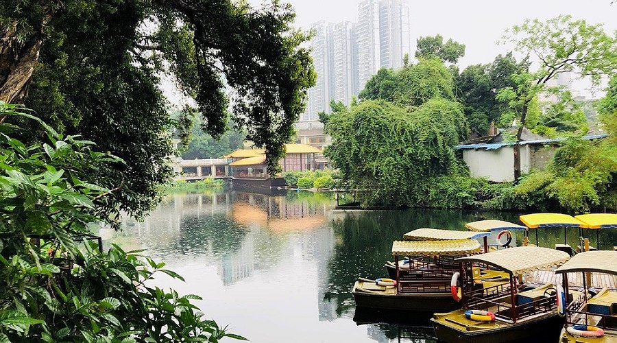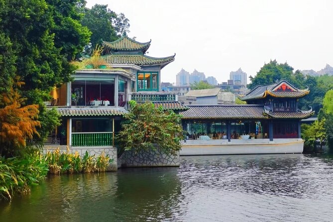 从仁威祖庙开始,参观完沿着泮塘路一路向南,会经过几家老字号手信店,过了荔湾湖公园的正门后,是中国最大的园林式酒家泮溪酒家,它与白天鹅宾馆出自同一设计师之手,高墙瀑布式的风格也很异曲同工。向前到龙津桥,对面有一座明清时的文塔。转入桥下的风水基特色街,沿街都是本地特色小吃摊,你可以买几个钵仔糕、鸡仔饼吃吃。走到底是荔湾湖畔,大榕树下的大戏台每天下午(14:00~17:00)有粤剧演出。