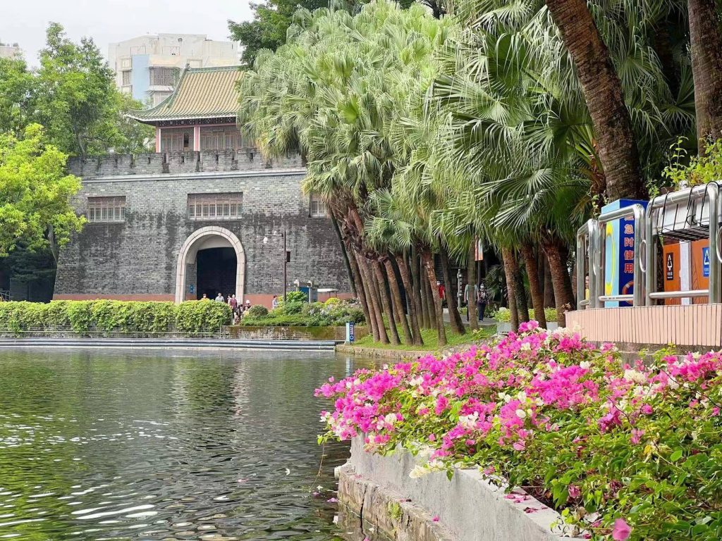 “楼成塔状,塔似楼形”的镇海楼坐落在园内最高点,在这里可以眺望羊城市景。现如今作为广州博物馆,除了打卡外观建筑外,还可以到馆内了解广州发展史。