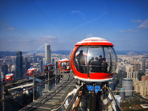 塔内设有5个观景平台,其中488米的户外观景平台可360度无障碍俯瞰羊城全貌,感受一览众山小的王者之风;位于二楼的珠江摄影观景平台,可以一览珠江江边风光,是拍摄城市中轴线的好去处;位于460米的横向摩天轮是广州塔最受欢迎的游乐项目。花上20分钟的时间,就可以在透明球仓里绕着广州塔旋转一周。480米的极速云霄带你体验“高空跳楼机”的刺激,不仅有传统的“坐跳”,更有模拟自由落体的“站跳”,是超级勇者挑战高空极限的佳选!