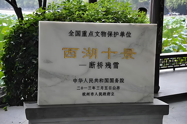冬日雪后,桥阳面先融、阴面留雪,远看“似断非断”;古称“段家桥”,再加上《白蛇传》的浪漫加成,就成了今天的“断桥”。