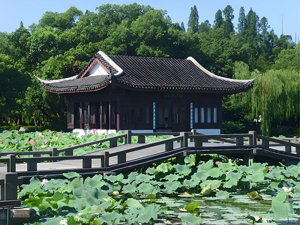 曲院风荷在西湖西北角,是“西湖十景”之一,南宋时这里有官家酿酒作坊“曲院”,夏日荷香混着酒香得名;清康熙改名为“曲院风荷”。现在是免费开放的大型园林,主打荷文化和酒文化。