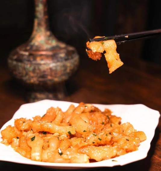 招牌必点匠心猪肝,厚切猪肝外酥里嫩,入口即化!据说师傅用了“过冰+三次过油”的秘制工艺,搭配特调卤汁爆炒,焦香四溢,甜咸交织,完全没有腥味!吃完立刻想再续一份!