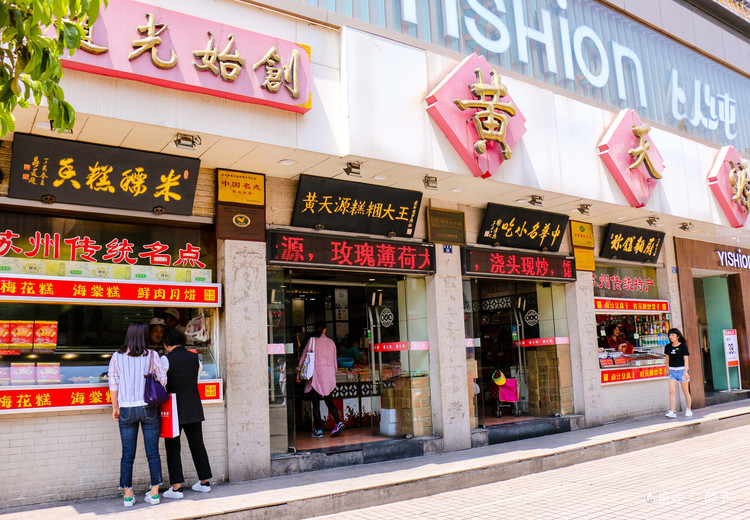 来观前街必打卡的老学号店铺黄天源,这家店主打的是各种糕团点心,有各种薄荷糕,猪油糕,米糕非常具有苏州特色,还有现做的梅花糕热乎乎的,里面是满满当当的豆沙馅料。