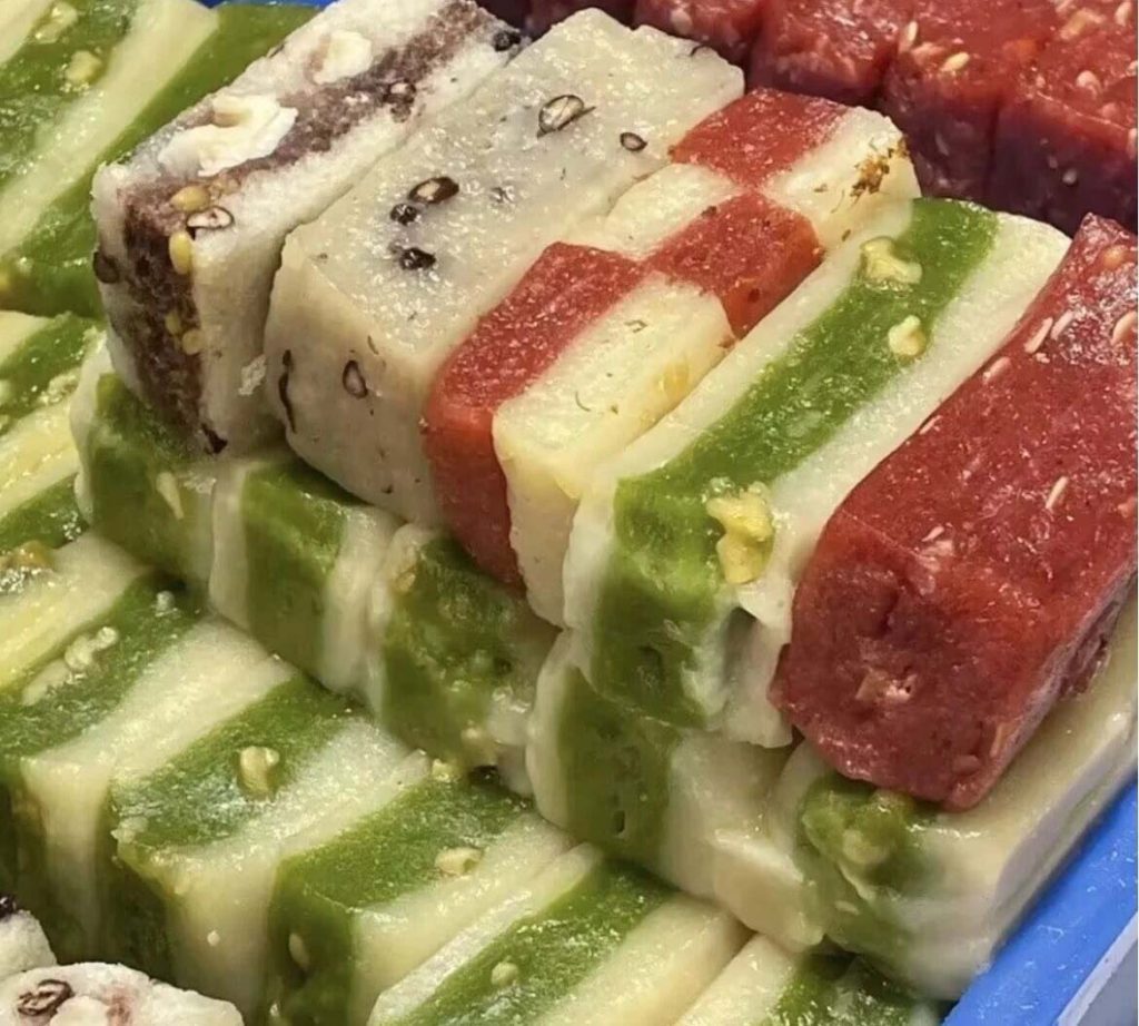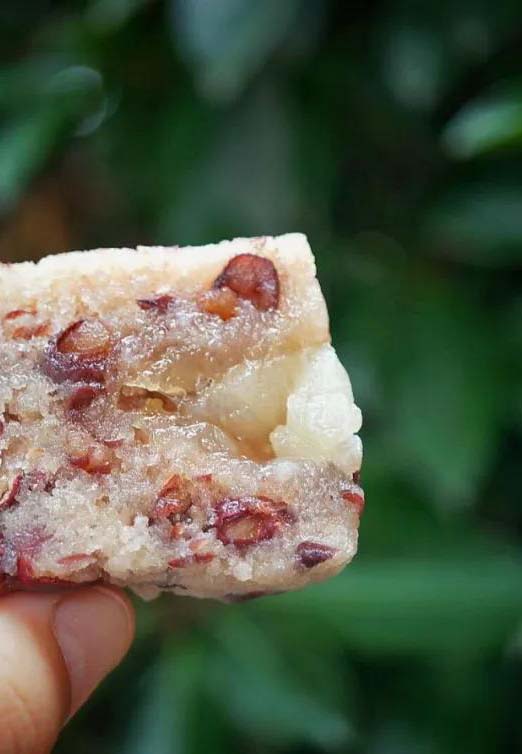 刚出炉的赤豆猪油糕,裹着晶莹的猪油丁,撒上桂花糖,松软中带着扎实,咬一口满嘴糯香。微波炉加热后依然软糯,即使带回家凉了也不怕,叮一分钟,江南的暖意瞬间复活!