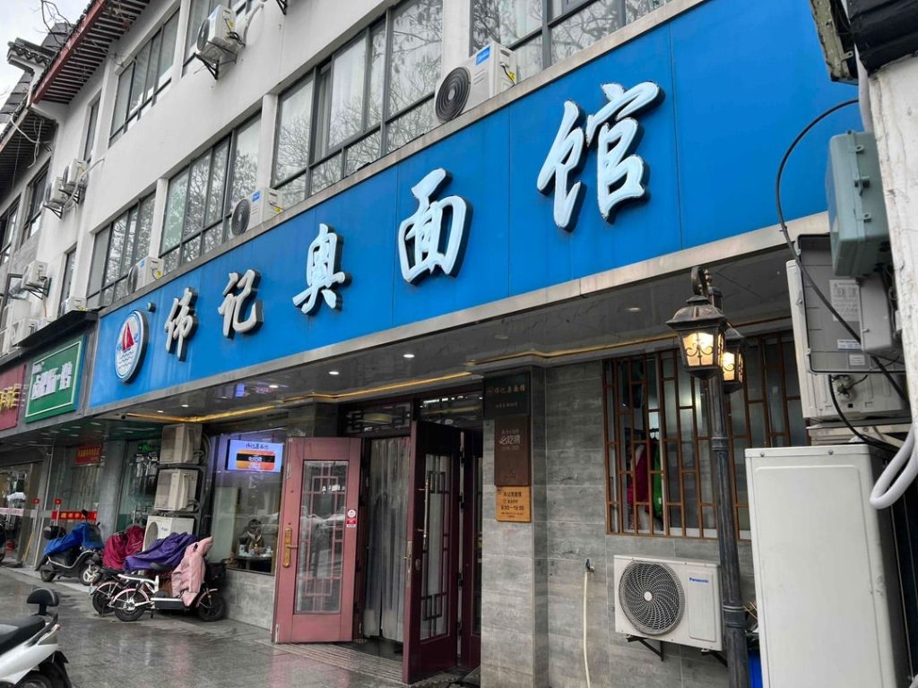 伟记奥面馆开在白塔东路266号,离平江路主景区隔了几条巷子,正是这恰到好处的距离,让这里少了游客的喧嚣,多了老街坊的日常。