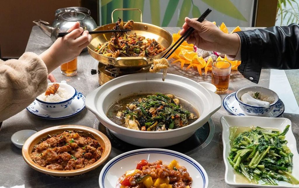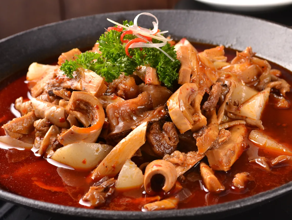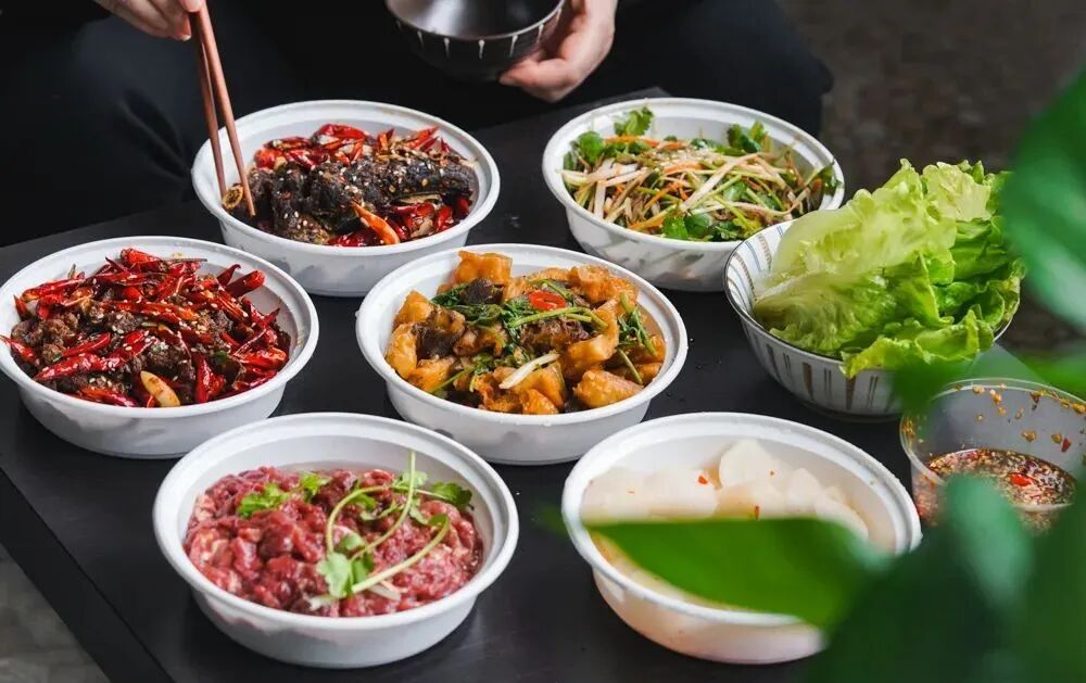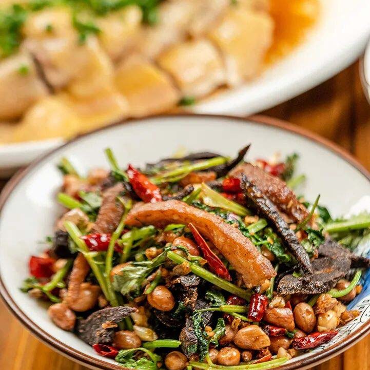 本是两道各自独立的菜,只因某日一位客人在把泡椒二股肠里的肠吃完之后,突发奇想地将剩下的泡椒和酱汁都倒进了土老鸭的锅里开火翻炒,再一尝,发现竟比原味的更带劲,从此引得其他客人纷纷效仿:点鸭必点肠,点肠必点鸭,点两道,尝三道。还有香菜连田尾节、泡椒蒸鱼头、酱椒牛肉、沙姜葱油鸡等闭眼点不踩雷狂揽回头客的拿手菜,家常味道,物美价廉。