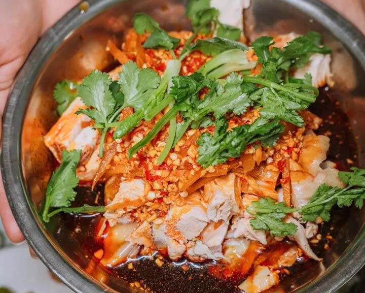 醋泡鸡是梁文油茶的独家美味,让人称绝的就是这经过反复调配的酸辣汁,看着红艳艳的,但其实不是很辣,酸中带甜,很是开胃。