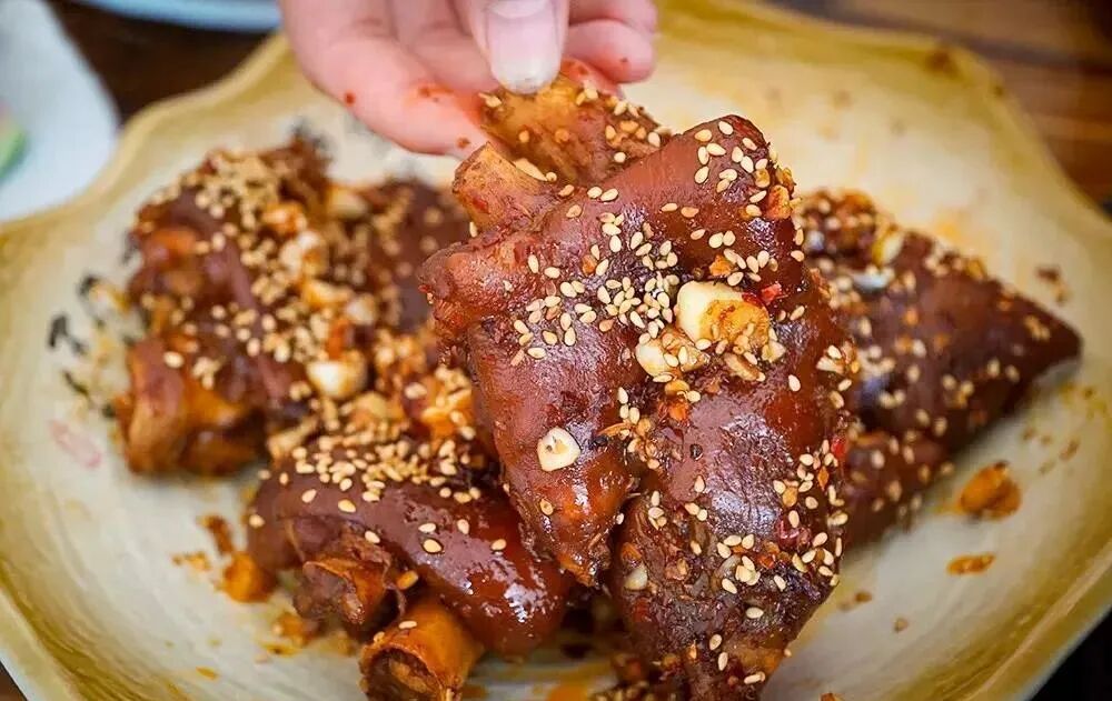 他们家这道猪脚也是点单王,现点现炸,加入大蒜、辣椒等调料炒制,最后撒上白芝麻,贼香,每咬一口都是满满的胶原蛋白,一点也不油腻,焦香的口味吃完都忍不住吮手指。