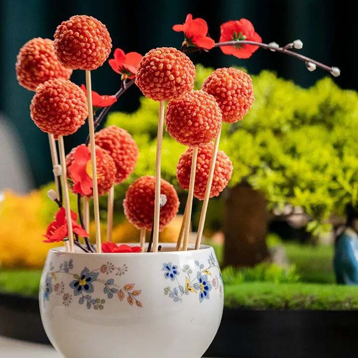 颜值超高的荔枝虾球,不见妃子笑,吃它倒是要“一骑红尘”的速度,外层红米花,酥脆带点蓬松,内馅是把虾肉、马蹄和肥肉剁碎调拌出来的,脆甜、细滑。