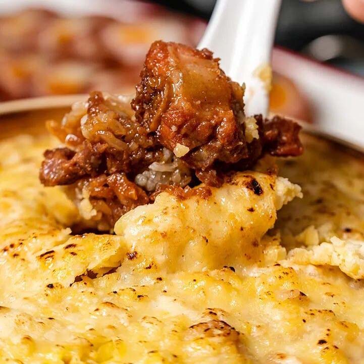 镇店之宝芝士笼仔糯香排,芝士的醇厚奶香、糯米的软糯清香与排骨的鲜嫩肉香相互交织,一口咬下,排骨酥烂脱骨,糯米晶莹黏唇,软糯与鲜香在舌尖共舞。