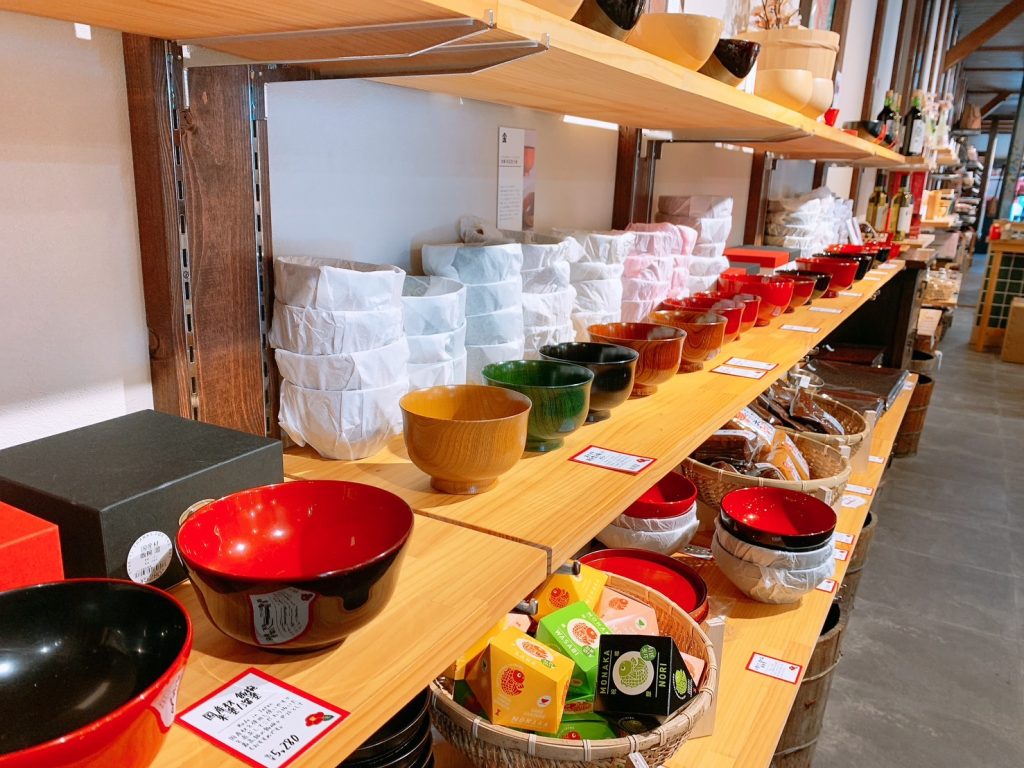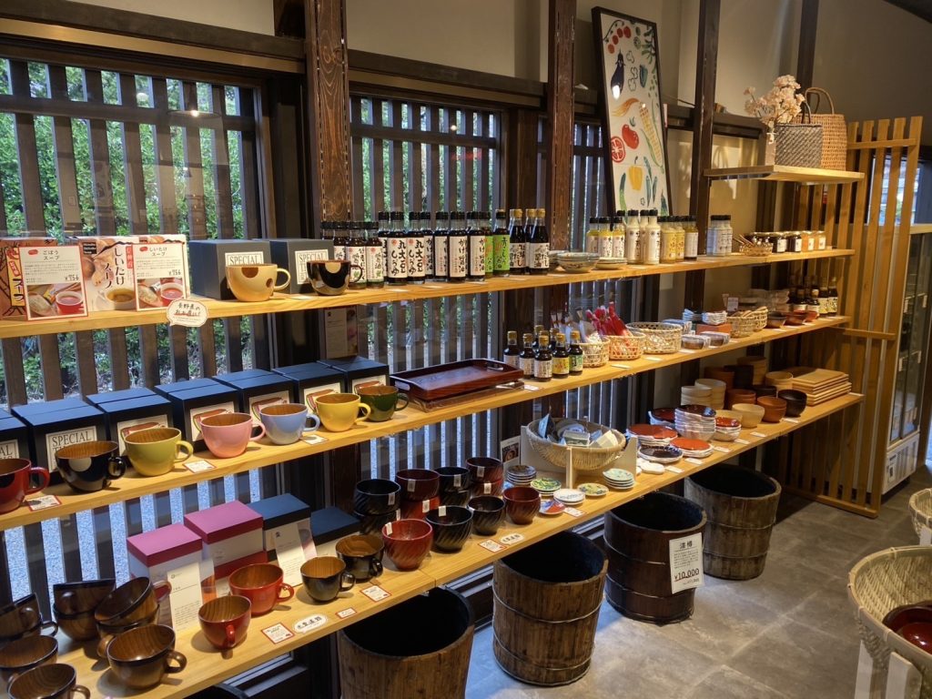 行至奈良井宿南端的玄关口,便与WABI×SABI不期而遇。这间店铺是中村漆器产业于1989年开设的直销店。12间敞亮的铺面内,摆满了木曾漆器与大型家具,因是产地直销,价格非常亲民。除了漆器,店内还汇集了荞麦面套餐、野泽菜、点心等本地特产。餐饮区还可以吃到香飘四溢的烤团子,开田高原的冰淇淋,再点一杯现磨的滴漏咖啡,闲看往来行人,便是旅途中最难得的悠闲时光了。