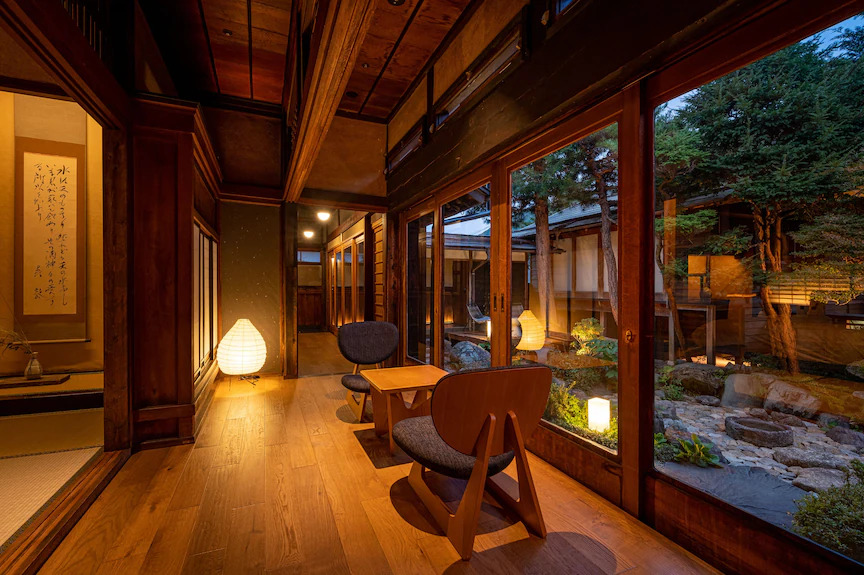 Wakamatsu由江户时代末期建造的太田家旧宅改建而成。一对花道家夫妇以“倾听花的气息,让心灵得以休憩”为理念,将这座古宅打造成了集画廊与住宿于一体的空间。这里每天仅接待一组客人。餐食也很有特色,灵感源自药膳、自然疗法与精进料理,选用当季时令食材,基本不使用四足动物肉类,对于注重养生的人来说,会是一场难得的体验。