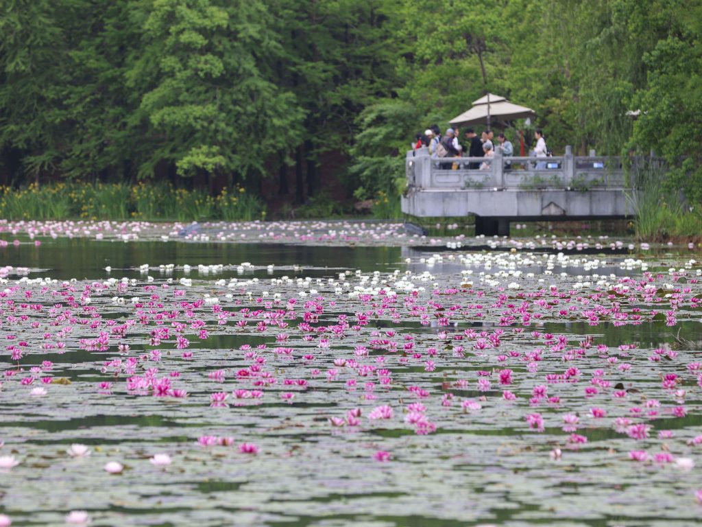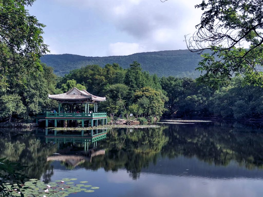 流徽榭:紫金山中中的“心形湖”,湖边是成片的水杉、银杏、乌桕。江南独特的水榭楼阁,掩映在五彩斑斓的树木下,美不胜收。一旁还有草坪,是秋日露营的好去处。