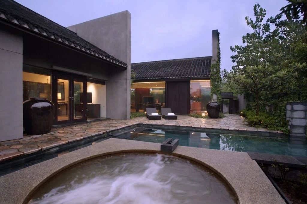 酒店拥有21栋独栋泳池别墅,面积300㎡起。室内所有的装饰,包括洗漱用品都秉承了巴厘岛kayumanis的肉桂元素。每一个别墅套房里都配有室外温泉和游泳池,温泉水引入自汤山天然温泉,秋日泡露天私汤惬意又治愈。