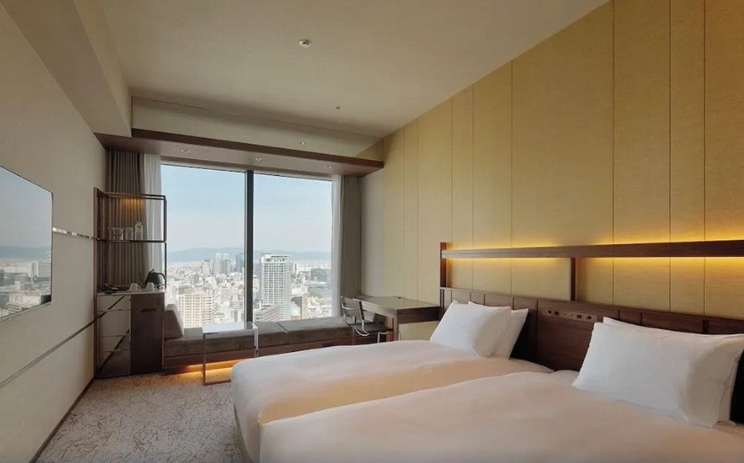 酒店的房型还是比较宽敞的,差不多24平左右,日常价格1100元左右,也是比较有性价比。楼下有罗森和全家,大堂在17楼 view很好 房间的view对着中之岛夜景也很美,楼下有直达机场的大巴 可以在前台买票很方便 。