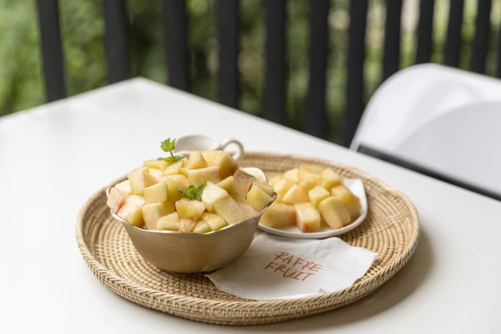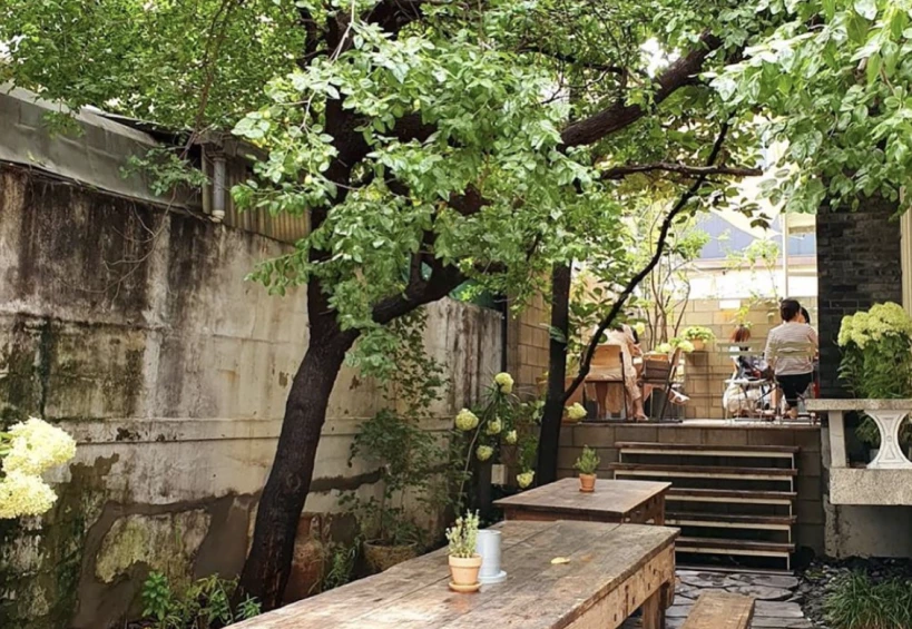 坐在户外小花园用餐,门口还有几棵小柠檬树,自带南法的度假气息。最推荐的是泡菜炒饭,搭配牛肉果和滑蛋,味道蛮惊艳的。