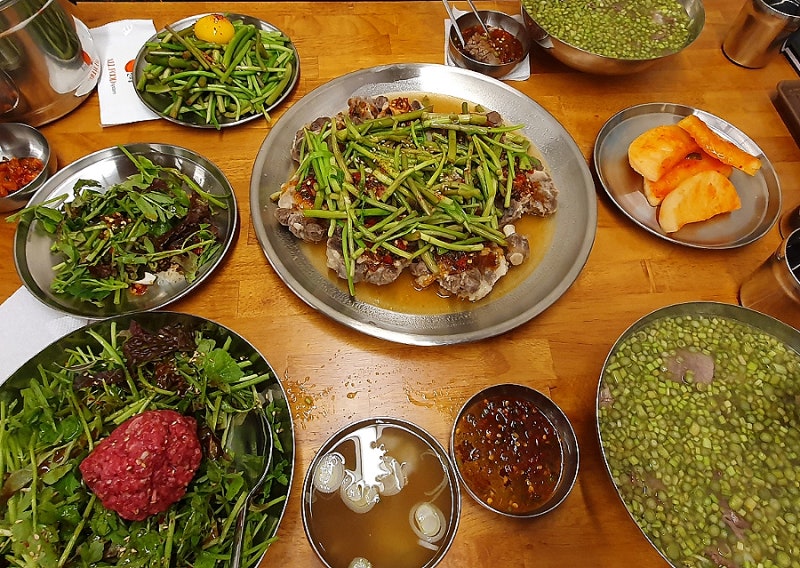 在圣水洞很火的水芹菜料理店,也是本地人也很爱去吃的店,每到饭点就会排长队。