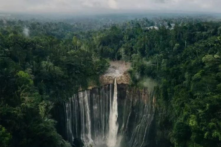 作为印尼东爪哇最令人惊叹的瀑布之一而闻名,它可能是整个印度尼西亚和东南亚中最酷的瀑布了。水流从茂密的雨林树冠奔涌而出,以层层叠叠的半圆形急流形式,倾泻至幽深的箱形峡谷中,与印尼最高的火山「赛梅鲁火山」,相互呼应形成了难得一见的壮美景观。