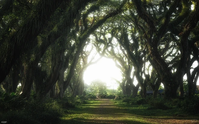 德贾瓦坦森林 Da Djawatan Forest,以其生长着巨大猴荚树而闻名,有着“指环王魔戒森林”的绰号,是东爪哇岛上的一个小景点,门票 ¥4,我们团费包含。公园说大不大,说小也不小,一棵树撑起一片天,树干上苔藓遍布,郁郁葱葱地绵延了几公里。