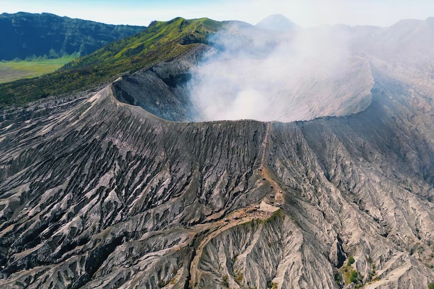 这里有被美国《国家地理》称为地球上最像月球的地方,占据着《孤独星球》印尼主题的封面,它宛如一朵绽放在蓝色星球上的黑雏菊边缘满是褶皱中心却是熔岩流淌的热火。它是一片荒无人烟的地带神秘、美丽,处于黑暗而不自知,这片荒无人烟的地带给人以世界尽头的感觉,所以它被称为印尼的“世界的尽头"。