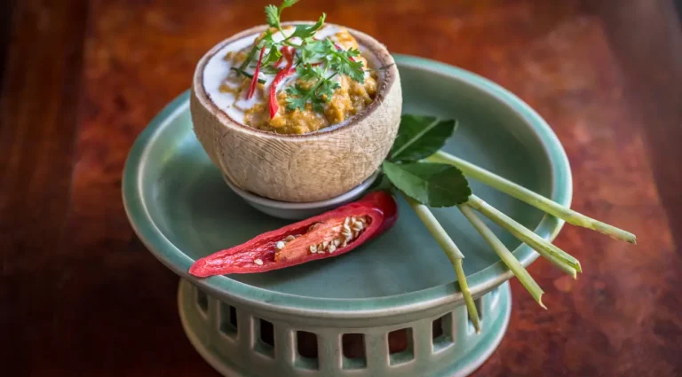 阿莫克鱼是柬埔寨最具代表性的传统美食之一。这道菜以鱼肉为主料,加入椰奶、香料和高棉咖喱粉,用香蕉叶包裹后蒸制而成。鱼肉鲜嫩多汁,椰奶的浓郁与香料的辛香完美融合,口感绵密,香气扑鼻。在暹粒的Amok Restaurant,你可以品尝到最正宗的阿莫克鱼。此外,位于金边的Romdeng餐厅也以其独特的高棉风味和精致的环境而闻名。