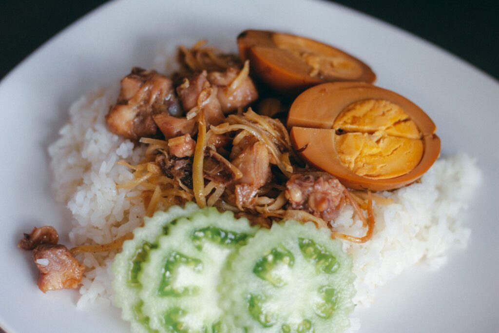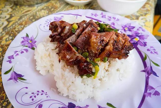 这是一道简单却美味的柬埔寨传统早餐。切成薄片的猪肉在炭火上烘烤,搭配上用姜黄调味的米饭,再配上泡菜或酸萝卜,口感丰富,香气四溢。在金边的Psar Thmei早市,你可以找到许多当地人喜爱的烤猪肉饭摊位。