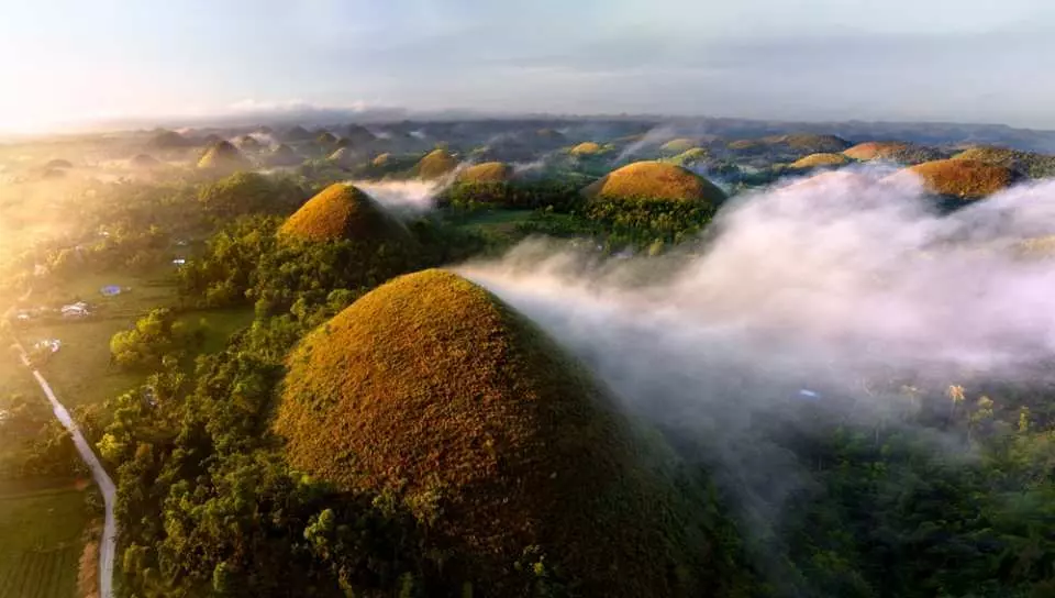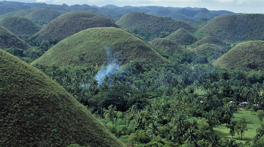 地形奇特的【巧克力山】,巧克力山在薄荷岛中部,附近是一处自然奇景,由1268个圆锥形小山丘组成的巧力山,高度介于40到120公尺之间,居高临下,好像一个个堆放在地上的干草堆。