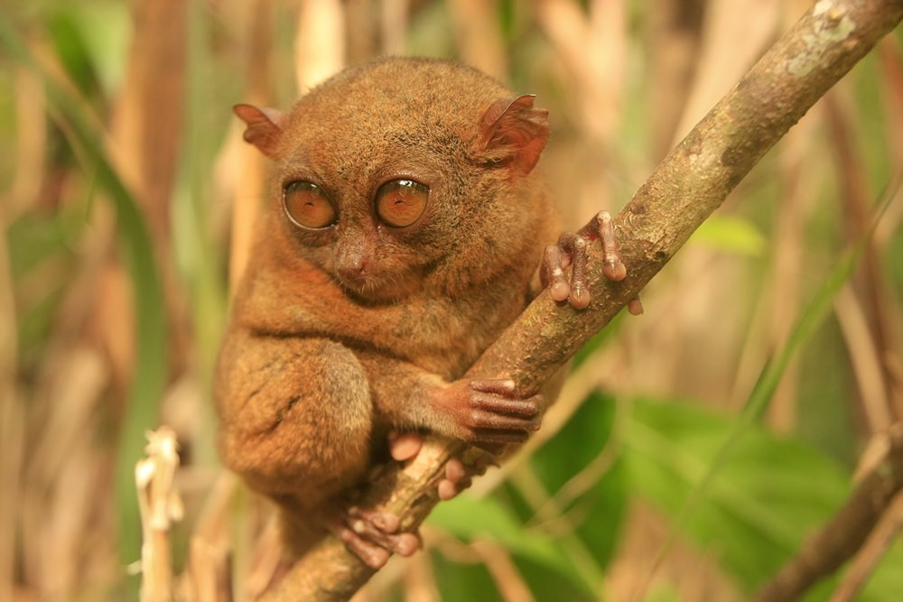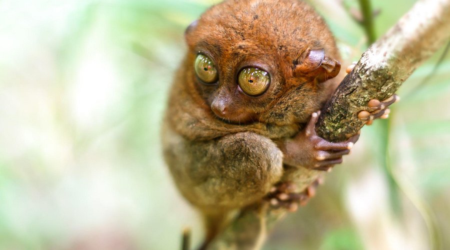 全世界最小的猴子—迷你眼镜猴,其最大特色是头部可转动一百八十度,身上的毛如丝绒,又厚又软,长长的尾巴配上大耳朵,十分有趣,也很讨人喜欢。据说拍ET外星人的电影正是以眼镜猴的样子作为蓝本。