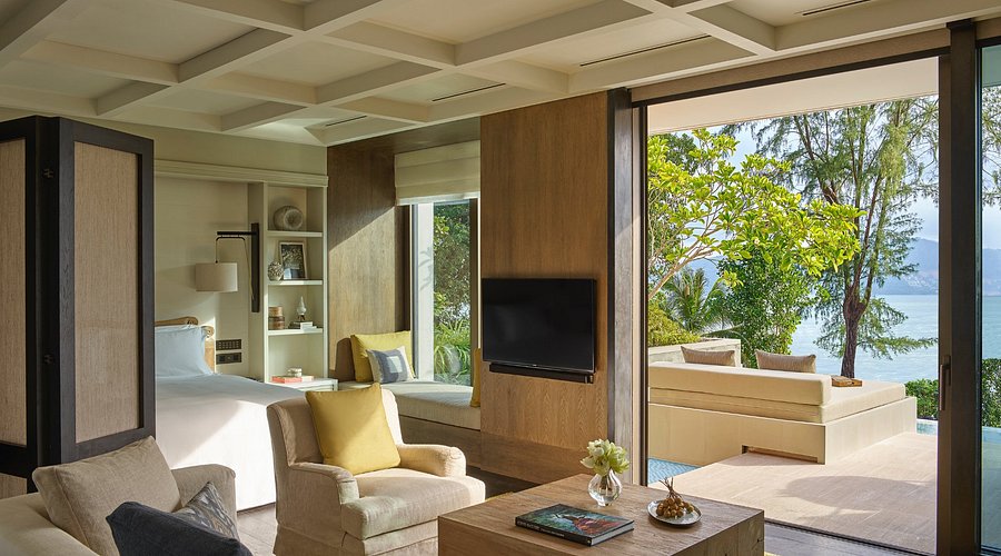宽敞的别墅均俯瞰攀牙湾(Phang Nga Bay),配有室外泳池露台(带用餐区和躺椅)、舒适起居区(带平板电视、免费网络连接和iPod基座)以及独立浴室(带浴缸和室外淋浴)。
