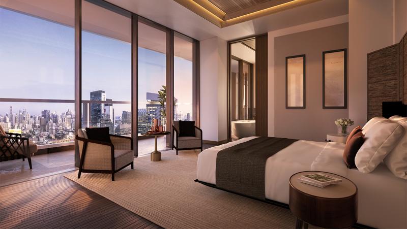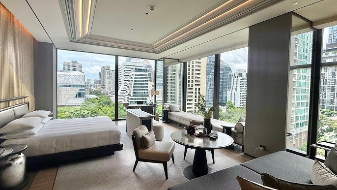 有222间宽敞套房,包括32间顶级套房,包括49间豪华房、全日制餐厅和特色餐厅,天空酒吧和餐厅,与壮丽的曼谷市中心融为一体。每一个空间细节体现其品牌标志性的低调奢华风格。酒店的室内设计由Yabu Pushelberg,他们秉持简约理念和富于创新的精神。大堂入口,金属屏风由激光切割后,连接成弯曲半透格栅,犹如南亚地区的藤蔓——过江龙。
